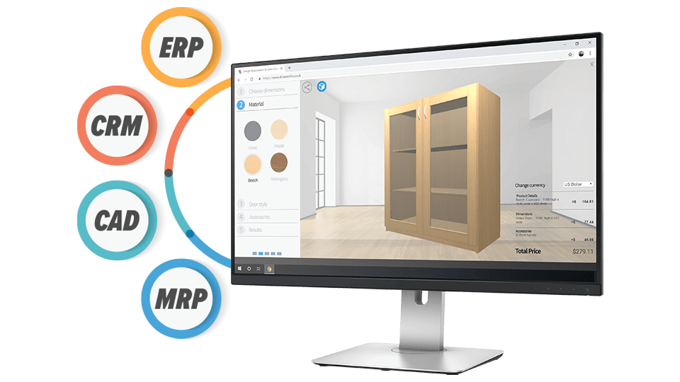 Ermöglichen Sie den Vertriebsmitarbeitenden oder auch Ihren Kunden, mit DriveWorks benutzerdefinierte Produkte im Browser auf jedem Gerät und von überall zu konfigurieren.