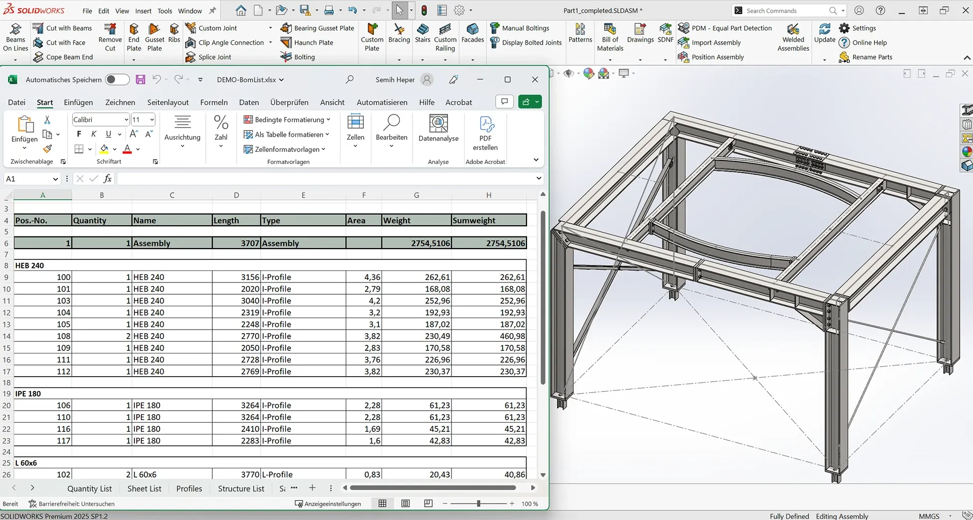 Stahlbautypische Stücklisten automatisch erstellen.