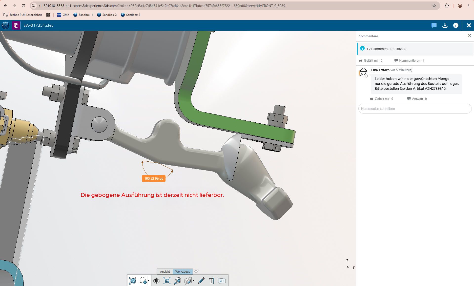 Statt Zeichnungen auszudrucken oder Dateien herunterzuladen, öffnet die Fertigung das Modell online, überprüft Passflächen, Wandstärken oder Zugänglichkeiten und hinterlässt konkrete Hinweise – ohne zusätzliche Software.