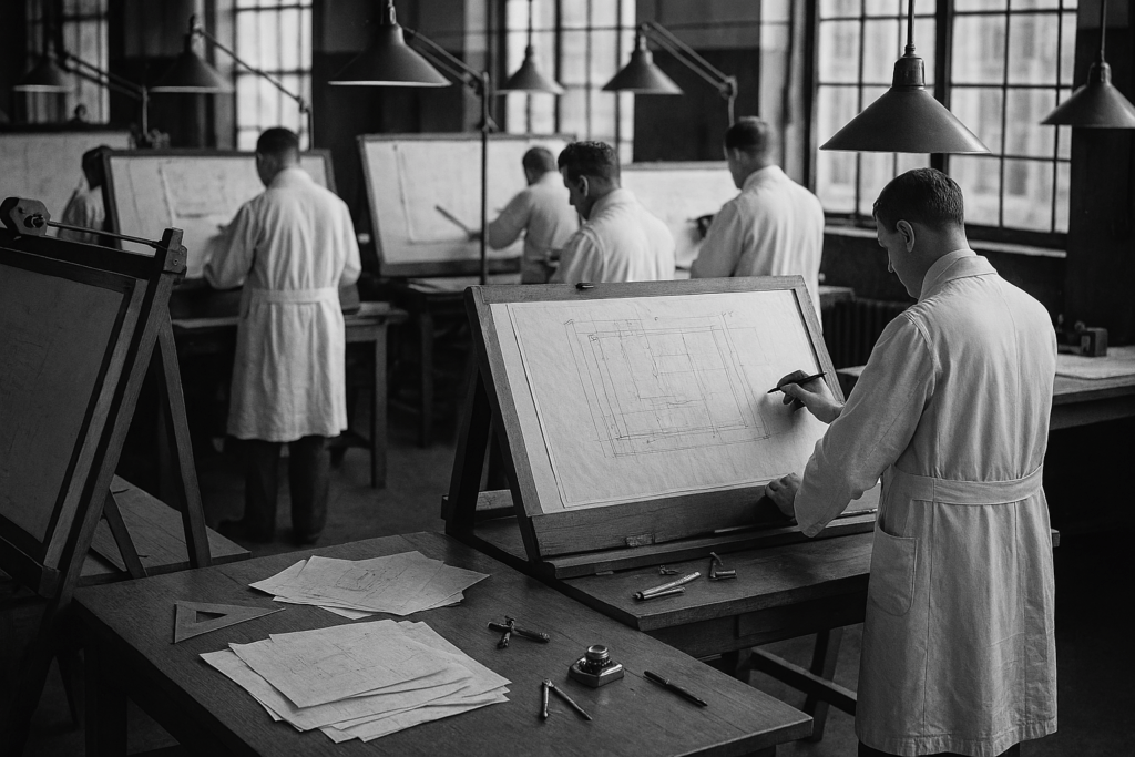 Bevor CAD-Programme wie SOLIDWORKS die Branche revolutionierten, war die Konstruktion ein analoger Kraftakt. Mit Tusche, Lineal und viel Geduld entstanden technische Meisterwerke am Zeichenbrett. Änderungen bedeuteten oft stundenlanges Radieren oder Neuzeichnen. Präzision und Ausdauer waren gefragt.