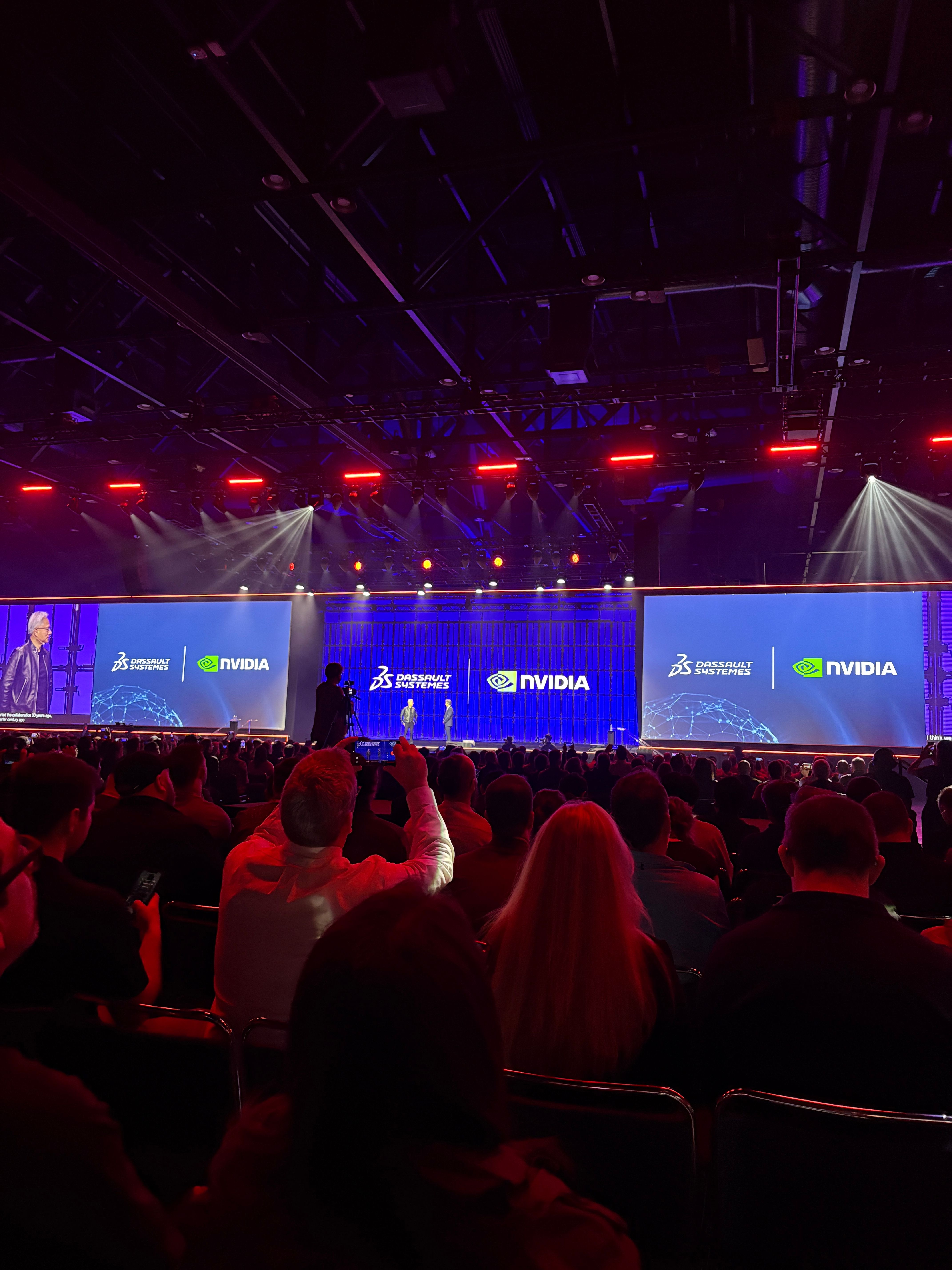 Am zweiten Konferenztag rückte die langjährige Zusammenarbeit zwischen Dassault Systèmes und NVIDIA als Schlüsselelement für die Zukunft industrieller KI in den Fokus. Jensen Huang (CEO von NVIDIA) formulierte dabei eine klare Vision: Die nächste industrielle Revolution basiert auf „Physical AI“ – also KI, die auf Physik, Engineering‑Daten und real validierten Modellen aufsetzt.