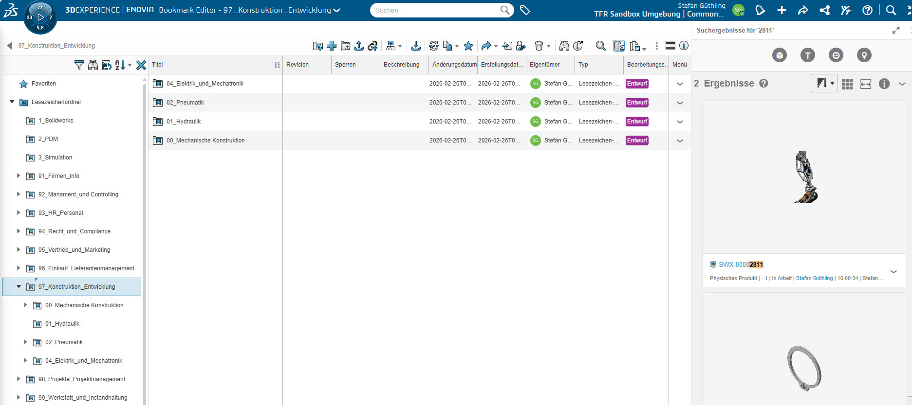 Ein gutes Datenmanagement zeigt sich im Alltag vor allem daran, wie schnell wir die richtigen Informationen finden. Oft klicken wir uns durch mehrere Ebenen, bevor ein Projekt geöffnet ist. SOLIDWORKS Design mit Verbindung zur 3DEXPERIENCE Plattform bietet dafür eine einfache Lösung: Lesezeichen (Bookmarks). Sie verweisen auf Baugruppen und Zeichnungen so, dass Sie sie ohne Umwege wieder aufrufen können.
