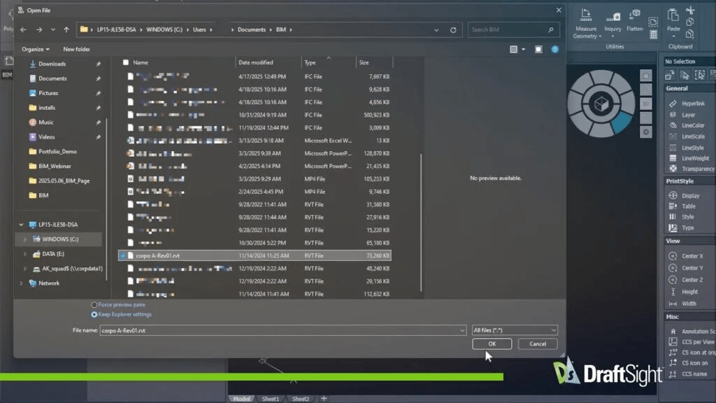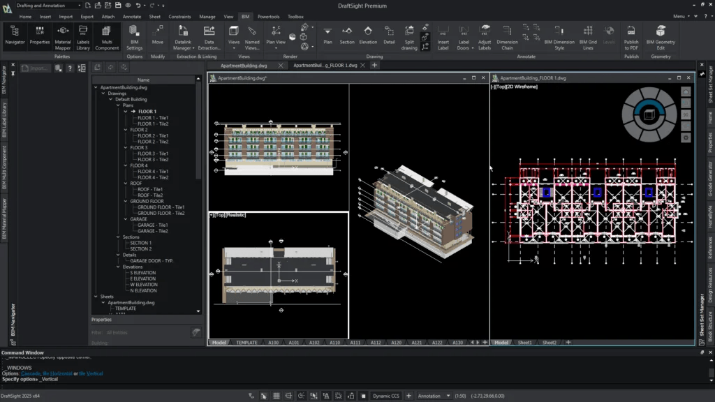 BIM-Modelle können nun direkt in DraftSight importiert und in das DWG-Format konvertiert werden. Der Import ermöglicht die direkte Umwandlung von Gebäudeinformationen aus 3D-Modellen in 2D-Pläne. Das spart Zeit, verringert doppelte Arbeitsabläufe und reduziert Fehler.