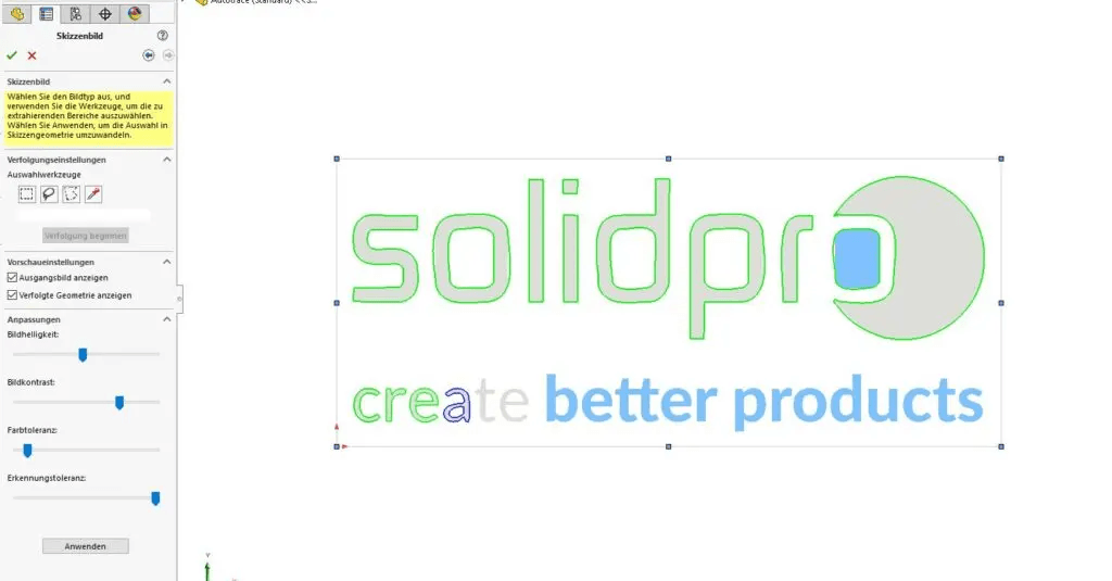 Logo als Bild in Skizze einfügen, um Konturen automatisch mit Autotrace zu übernehmen