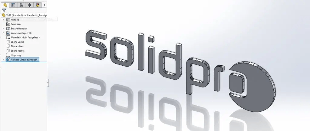 Wenn die Kontur eines Logos oder Bildes in der Skizze ist (wie unter 1. beschrieben), lässt es sich auf einfache Weise in einen 3D-Körper umwandeln. Sie wenden die Skizze einfach auf das Feature Linear ausgetragener Aufsatz an.