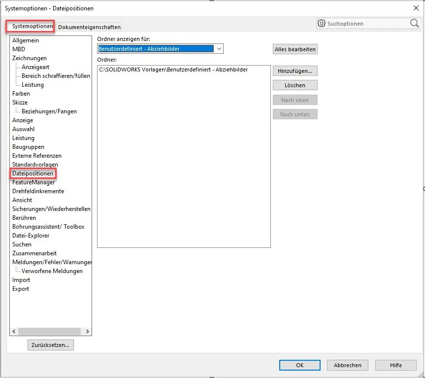 Woher weiß ich auf die Schnelle, wo das Verzeichnis liegt? Fahren Sie dazu mit der Maus einfach im Taskfensterbereich rechts über Abziehbilder und der Pfad wird Ihnen angezeigt.