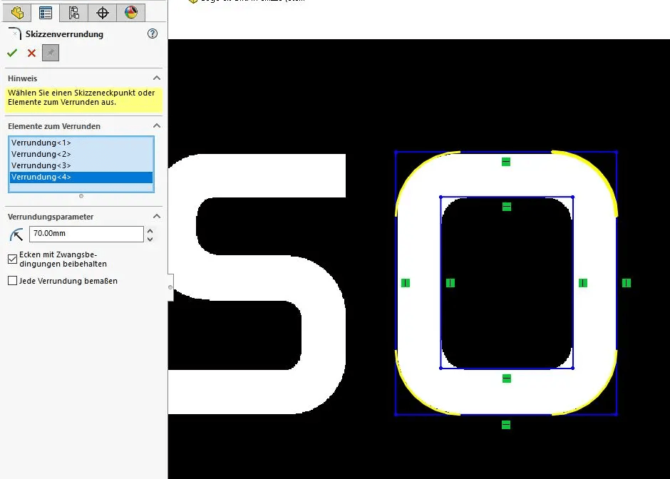 Wenn die Kontur dann vollständig nachkonstruiert ist und wenn möglich die Skizze voll definiert ist, können Sie die Skizze auf ein Austragungsfeature anwenden.
