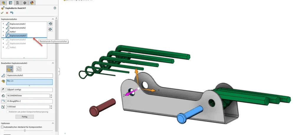 Sie können das Feature Explosionsansicht natürlich auch bearbeiten, wenn das Feature schon abgeschlossen wurde.