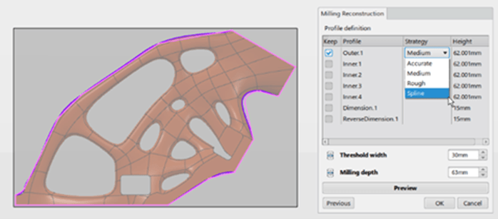 - Mit der neuen Spline-Approximationsstrategie können genauere Profile erstellt werden. Damit werden Schnitte genauer und jederzeit bearbeitbar.