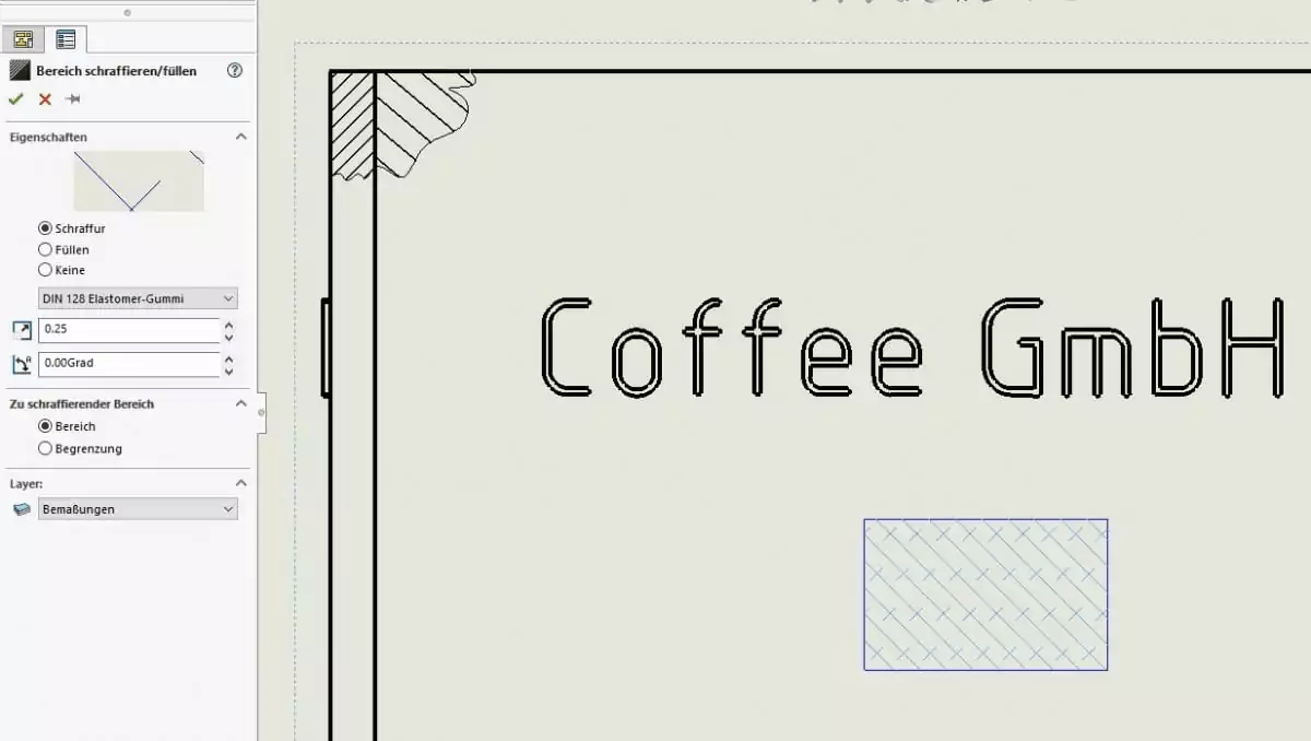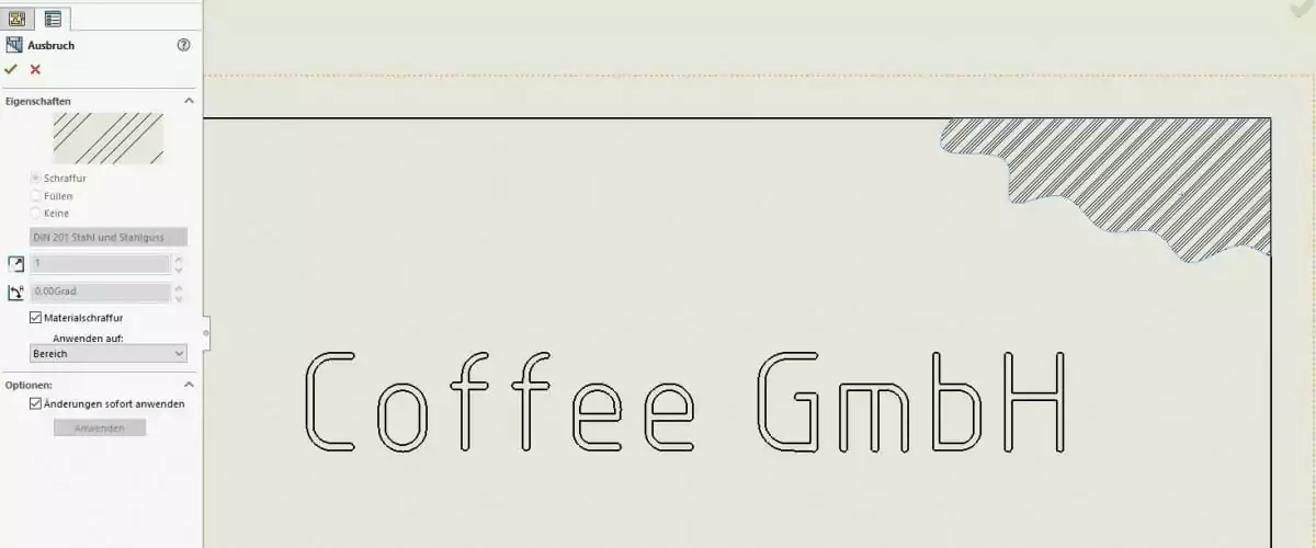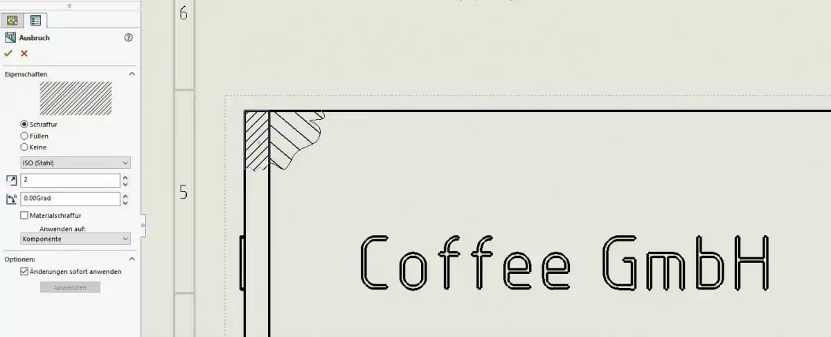 SOLIDWORKS Zeichnung: Schraffuren ändern..