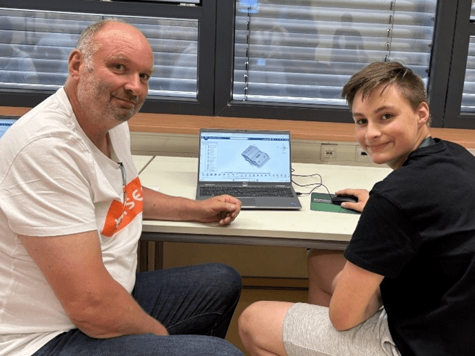 Für die technische Umsetzung arbeiteten die Schüler:innen mit der Konstruktionssoftware XDesign auf der 3DEXPERIENCE Plattform for Education. Über die sogenannte „Teacherrolle“ konnte die Lehrkraft die Teilnehmenden einladen, Rollen verteilen und sie in die Projektumgebung einführen. Unterstützt wurden sie dabei von unserem Experten Tobias Edelmann aus dem Design Solution Team. Seine praktische Schritt-für-Schritt Schulung in die Basisfeatures im 3D-CAD sorgte für einen schnellen Einstieg – die Schüler:innen kamen schnell mit der Software und der Community Plattform zurecht!